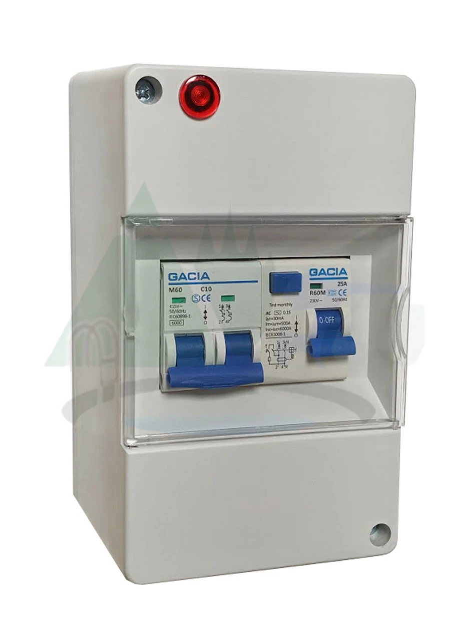 Providing you with maximum security for site mains electricity in your caravan or campervan, this consumer unit has a 25 Amp Residual Circuit Breaker and has a 10 amp double pole MCB’s (Miniature Circuit Breakers)Â